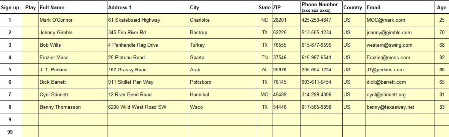 Sample Announcer Sheet