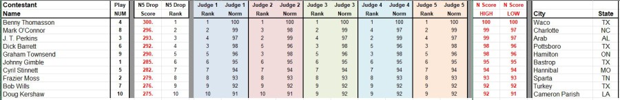 Sample Score Entry Sheet